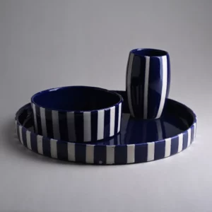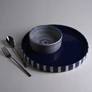 Assiette de présentation à rebord bleu rayures 30 cm