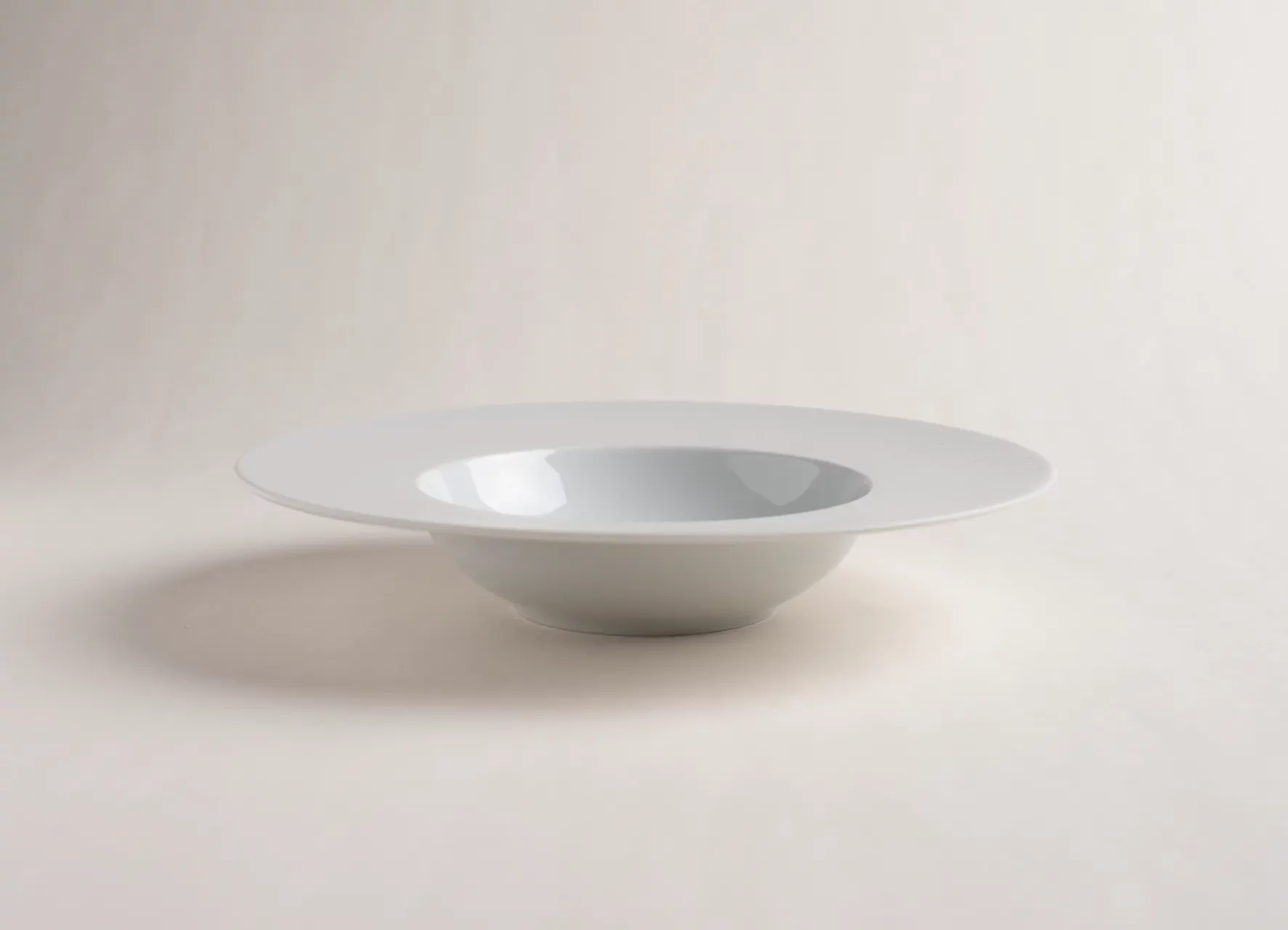 Assiette creuse en porcelaine blanche lisse avec bordure blanc mat. Son design épuré et sa profondeur maîtrisée en font une pièce idéale pour les soupes, pâtes ou plats en sauce dans un univers sobre et haut de gamme.