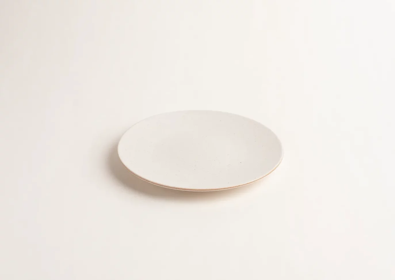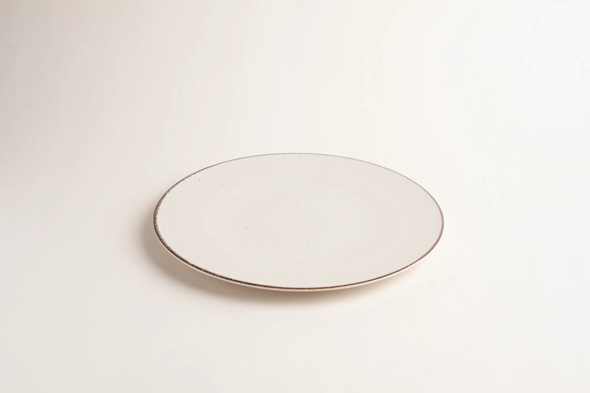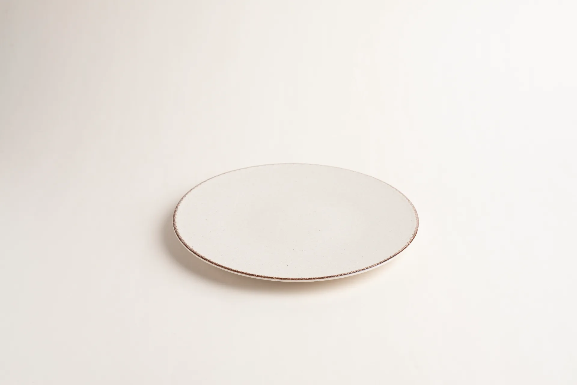 Assiette en grès émaillé aux tons naturels et chaleureux, mêlant beige doux et lisière rouille pour une touche artisanale subtile.