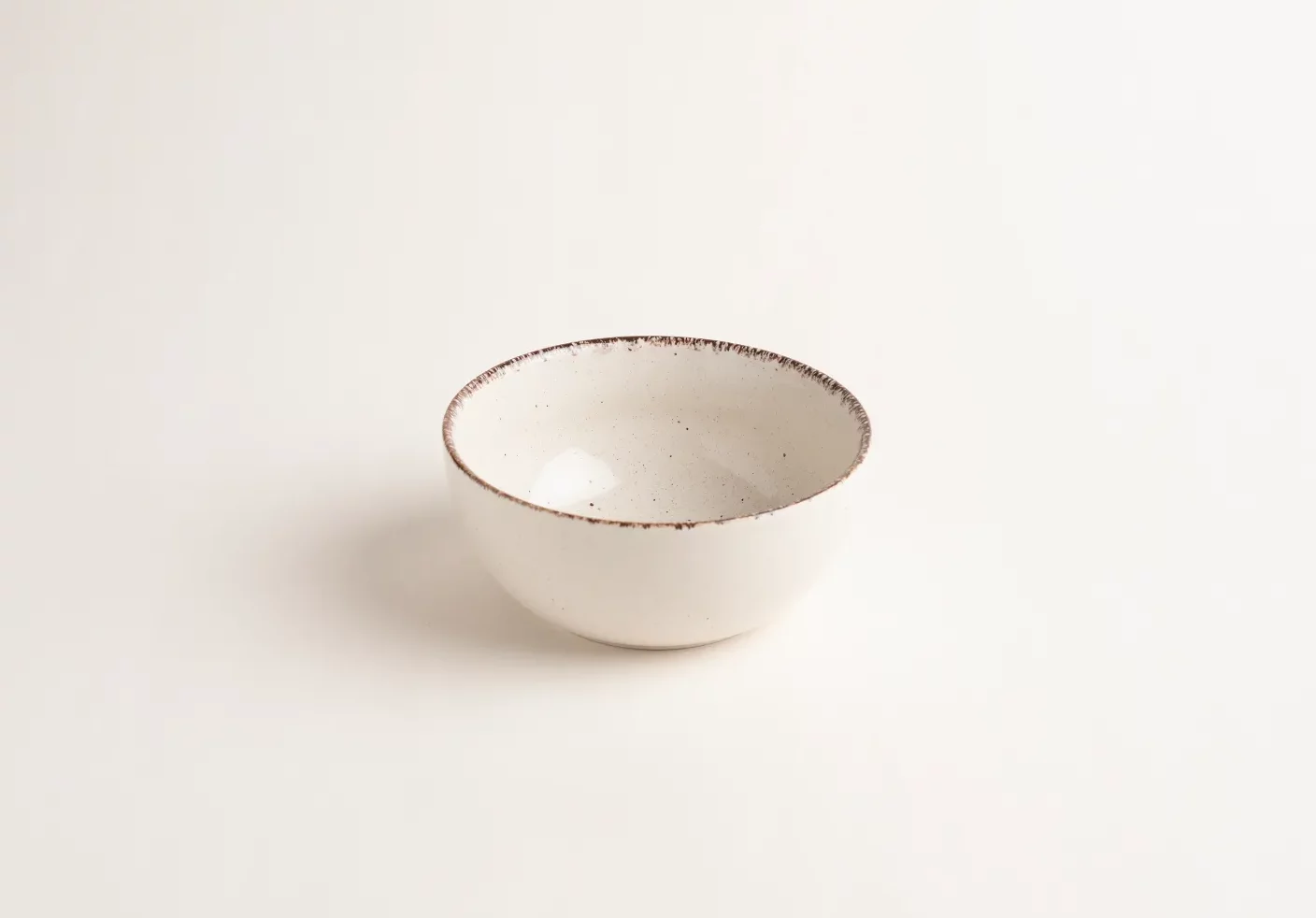 Petit bol en grès émaillé, au ton beige naturel souligné d’une lisière rouille délicate.
