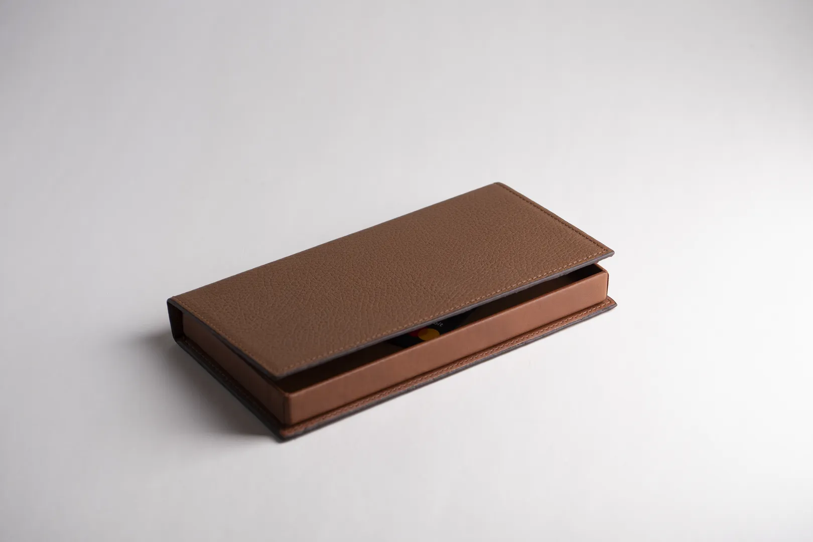 Ce porte-addition en format coffret rigide est réalisé en cuir de vachette pleine fleur, matière noble par excellence, alliant esthétisme et durabilité. Sa structure robuste à angles droits et sa finition soignée en font un accessoire élégant, idéal pour les établissements souhaitant affirmer leur standing jusqu’au moindre détail.