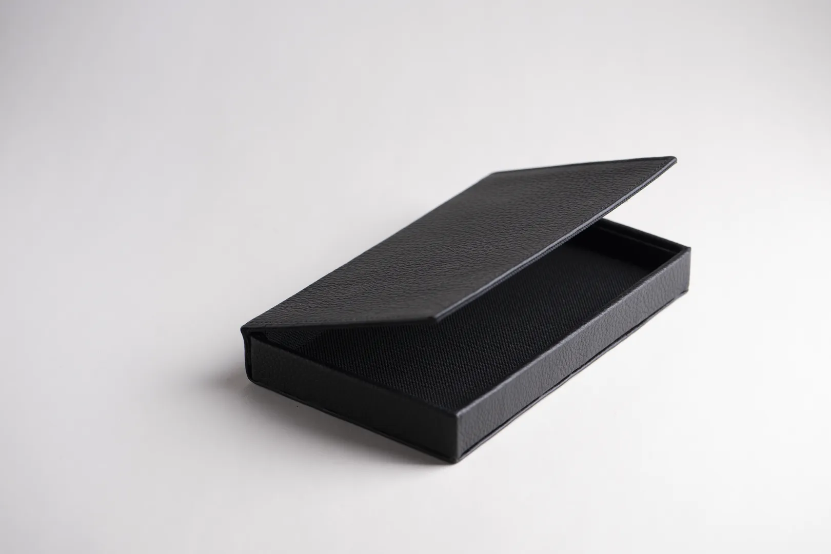 Ce porte-addition coffret est conçu pour offrir une présentation élégante et pratique de vos notes en salle. Fabriqué en cuir de vachette, il séduit par sa texture raffinée et sa finition soignée. Sa structure rigide renforcée par un insert cartonné garantit une bonne tenue, tandis que l’intérieur en feutrine assure une protection douce et haut de gamme.