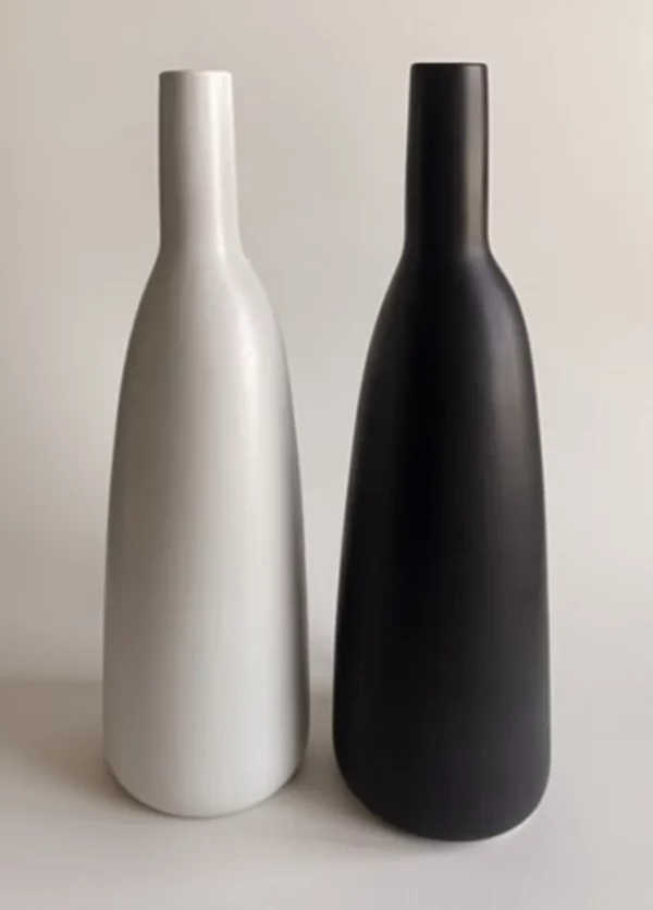 Vase au design épuré et contemporain, disponible en deux tailles et deux finitions mates : noir profond ou blanc pur. Sa silhouette élancée (jusqu’à 52 cm) apporte une touche sculpturale à tout espace. Autres couleurs réalisables sur demande.
